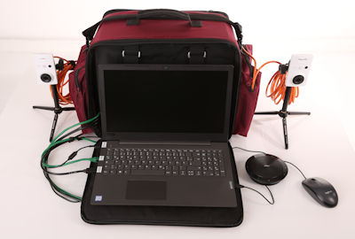 - Tasche 3: System-Tasche mit 2 x Axis W-LAN Kameras (Reichweite bis 120m) mit Tischstativ, Notebook, Apple TV Empfang für EKG, Multi Capture V4 zur medizinischen Ausbildung